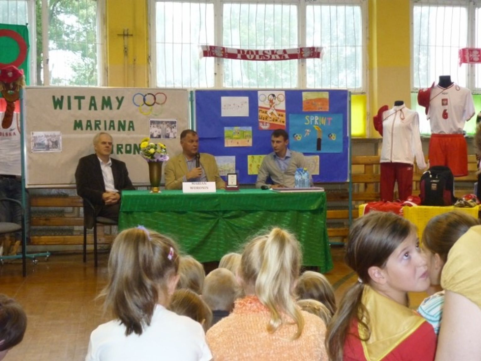 i przygotowania sali doskonale wywiązała się Monika Apostołowicz – współorganizator spotkań, nauczyciel wychowania fizycznego w miejscowym gimnazjum. Grupa Era Dance przygotowała pod okiem p. Moniki układ taneczny. Specjalną dedykację dla olimpijczyka, piosenkę pt. „Heal the Word” Michaela Jacksona, wykonały gimnazjalistki z zespołu „Nuta w nutę”.