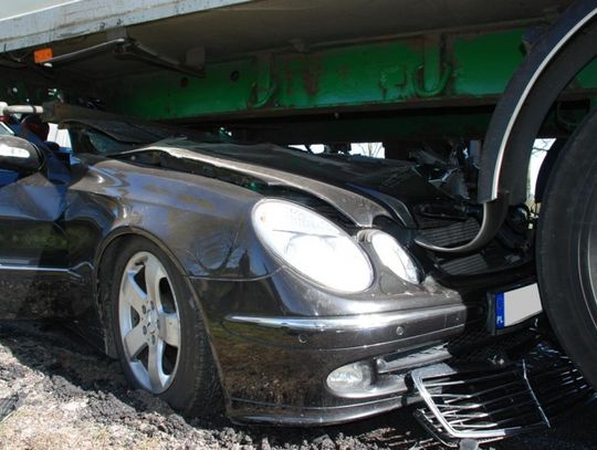 Z relacji 58-letniego kierowcy mercedesa wynika, że w trakcie manewru wyprzedzania scani, gdy znajdował się na lewym pasie ruchu zauważył pojazd jadący z przeciwka. Wówczas zjechał na prawy pas ruchu, zatrzymując swój pojazd przed stojącym autem ciężarowym. W momencie zatrzymania poczuł silne uderzenie w tył swojego pojazdu. Spowodowało to przemieszczenie się jego pojazdu pod tył naczepy samochodu ciężarowego stojącego przed nim. Taką wersję potwierdził również pasażer mercedesa.