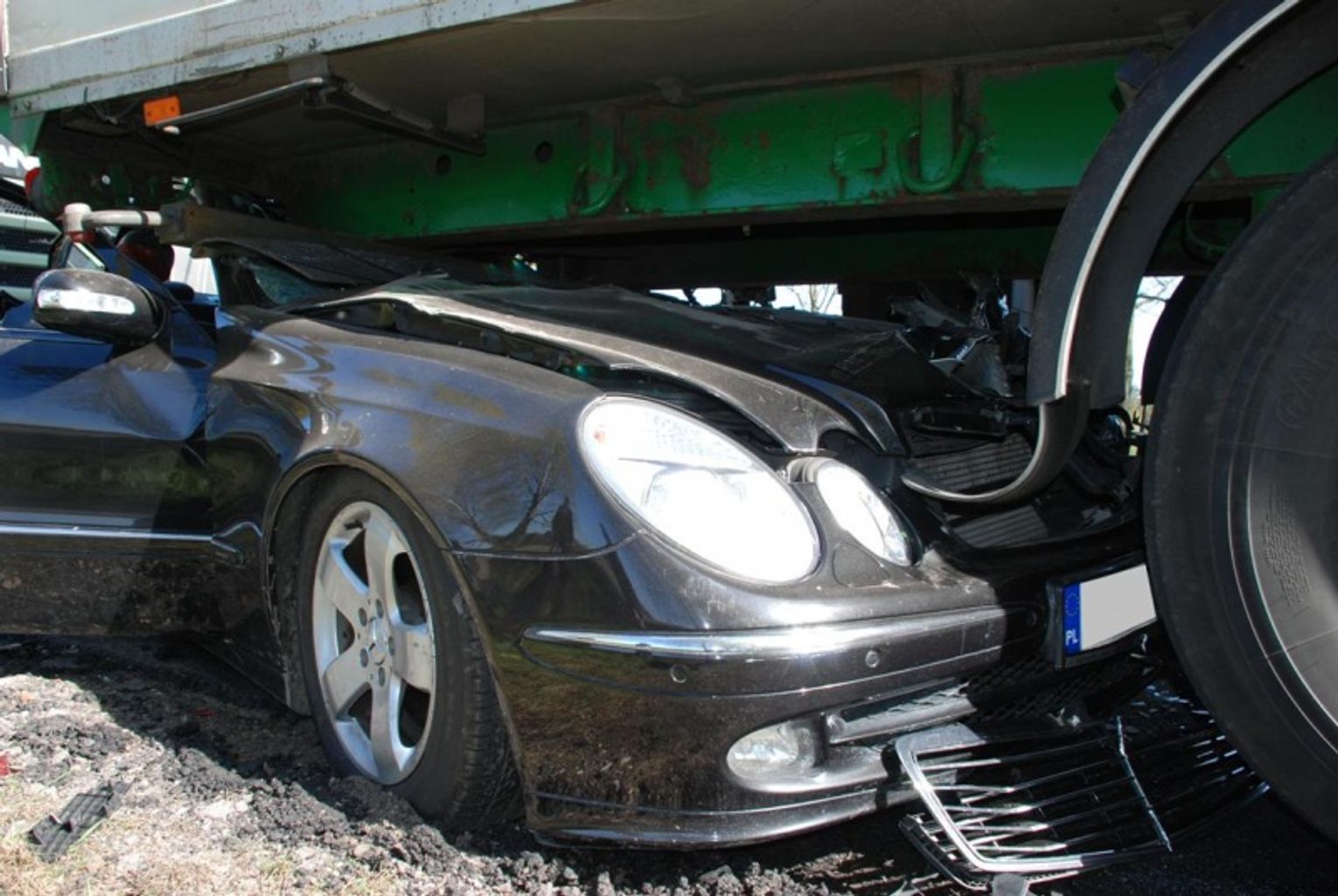 Kierujący samochodem ciężarowym daf w pewnym momencie zatrzymał się na swoim pasie ruchu ze względu na prowadzone roboty drogowe. W momencie zatrzymania pojazdu 30-letni kierowca poczuł silne uderzenie w tył naczepy ciężarówki. Kiedy wysiadł, zobaczył mercedesa wbitego pod naczepę jego samochodu, a za nim ciężarową scanię.