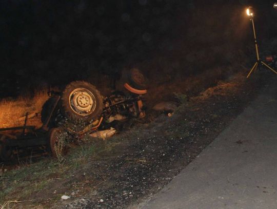 Z informacji policji wynika, że nieszczęśliwy wypadek miał miejsce ok. godz. 21. Jak ustalili pracujący na miejscu policjanci, jadący od strony Huty Kalnej ciągnik z nieustalonej przyczyny zjechał na pobocze i przewrócił się przygniatając dwóch jadących nim mężczyzn. Śmierć poniósł 53-letni mieszkaniec gminy Kaliska, a drugiego mężczyznę - po podniesieniu ciągnika - wyciągnięto. Z licznymi obrażeniami ciała przewieziony został do starogardzkiego szpitala.