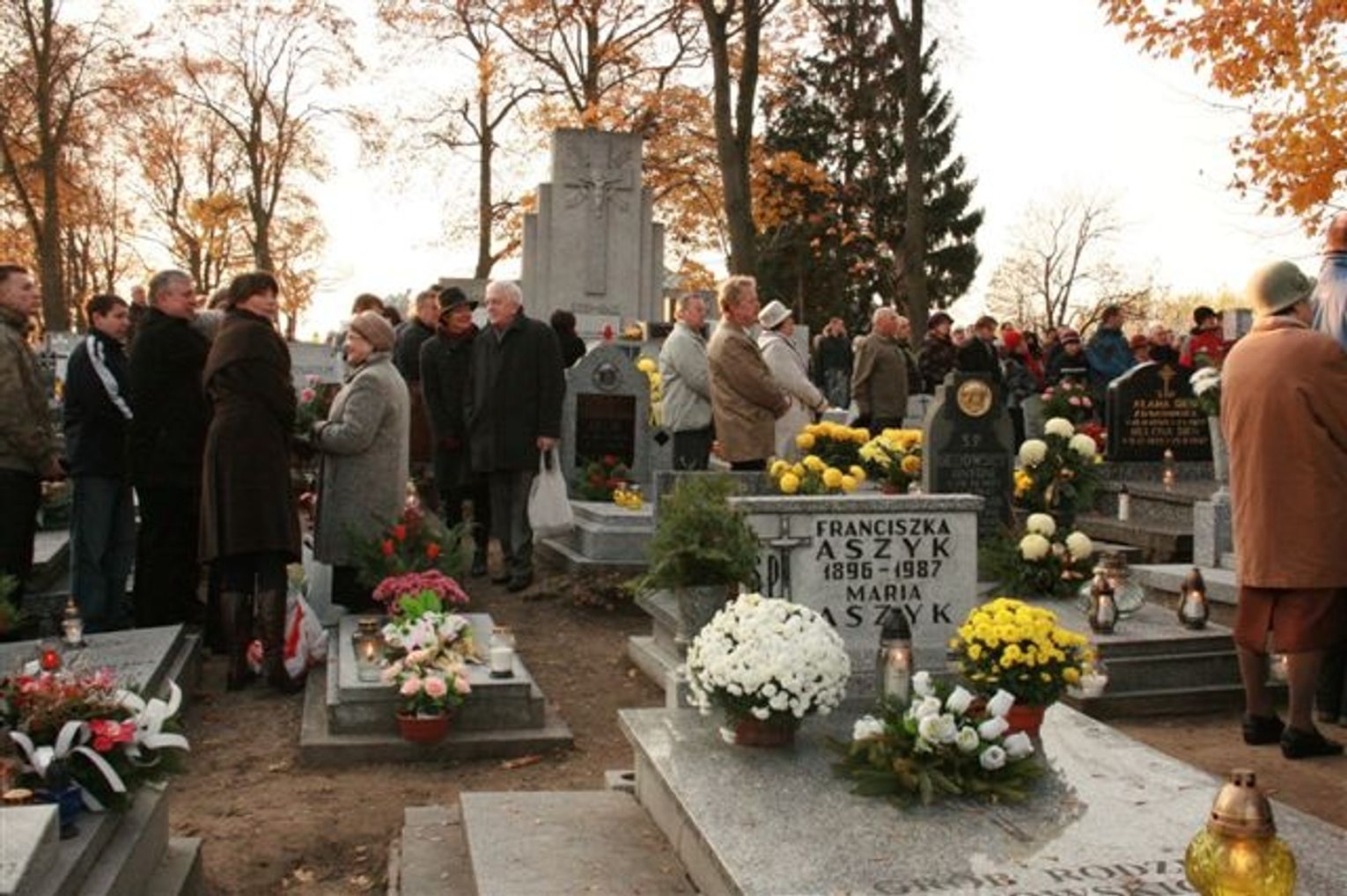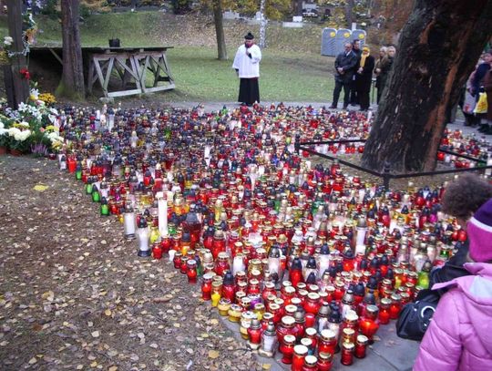 - Każdego roku o tej samej porze stajemy na tym skrawku ziemi, świętej ziemi by wspomnieć tych, którzy nas wyprzedzili w drodze do Domu Ojca. Wokół nas mogiły bliskich. Jakoś dziwnie cichną nasze serca i myśli człowiecze, bo tu przemawia Bóg. To miejsce, które zwykle napawa grozą majestatu śmierci, jakby ożywia się na to dzisiejsze nasze przyjście. Zresztą sami o to dbamy. Na przekór jesieni siejącej spustoszenie w życiu przyrody przynosimy kwiaty – ostatni żywy dar tej pory roku. Na przekór wcześnie zapadającemu zmrokowi, palimy świece by przypominały światłość wiekuistą. Na przekór jesiennym chłodom palimy znicze, by rozgrzało się powietrze i na długo wystarczyło tej łuny bijącej znad pomników w odświętnym nastroju. W takiej scenerii stajemy tu jako ci którym jeszcze nie zagoiły się rany po rozłące z najbliższymi. Nawet po latach czas nie zatarł obrazu tych których przykryła ziemia i nagrobna płyta. Trudno pogodzić się z myślą,że oni nie należą już do nas ani do tego świata, a tak chcielibyśmy włączyć ich do naszych rozmów by i oni mieli coś z naszego życia, by podzielić się z nimi naszymi sprawami, osiągnięciami, nasza radością i smutkiem. Wiemy,że jeżeli zniszczeje nasz przybytek ziemskiego zamieszkania będziemy mieli mieli mieszkanie od Boga. Do nie ręka uczyniony lecz wiecznie trwały w niebie.