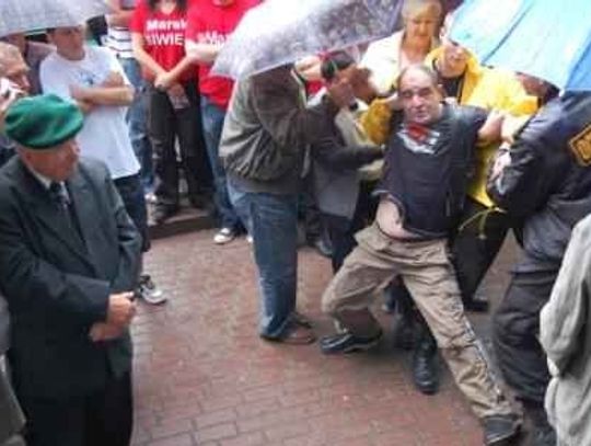 WYBORY. Brutalna interwencja ochroniarzy podczas debaty we Wrześni, gdzie odbyły się prawybory. Eurodeputowany z SLD Marek Siwiec powiedział z trybuny do słuchacza: "Spadaj ze sceny!" Ochroniarze targali wyborcę po ziemi. W takiej atmosferze była debata kandydatów do Brukseli. Prawybory wygrała Platforma. Główny konkurent - PiS zbojkotował tę imprezę, tak jak LIBERTAS Polska.