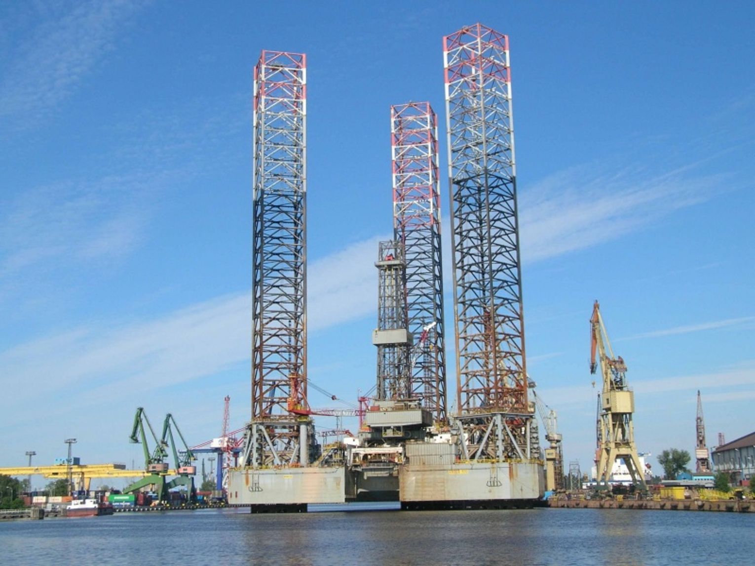GDAŃSK. Przy stoczniowym nabrzeżu Gdańskiej Stoczni Re-montowej S.A. cumuje pływający obiekt typu offs-hore. To platforma wiertnicza amerykańskiego armatora Offshore Internationale Campany.