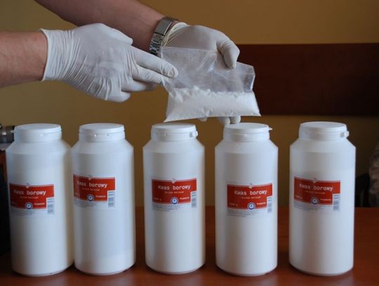 W trakcie przeszukania garażu zajmowanego przez 26-latka znaleźli kolejne porcje środków odurzających. Tym razem zabezpieczyli 100 g amfetaminy. Natomiast w mieszkaniu znaleźli 5 plastikowych butelek z kwasem borowym i wagę elektroniczną.