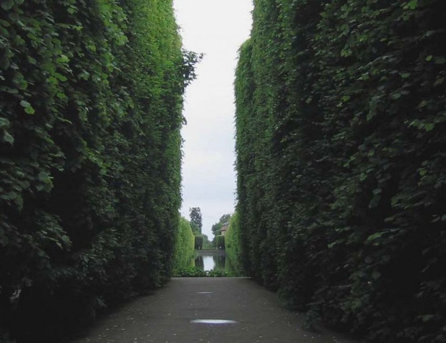 Powstał staw, długi na 220 m, rozszerzający się w kierunku patrzenia, co sprawia złudzenie, że jest o wiele dłuższy i łączy się z morzem. Oto, co pisał na ten temat w 1777 roku Jan Bernoulli: „Z (odwiedzin w) parku byłem bardzo zadowolony, nie dziwiąc się zresztą jego piękności, bowiem już wcześniej wiedziałem, że jest godny bogatego i sławnego klasztoru, do którego należy. Jest całkiem płaski i jego istotna wyższość polega na głównej alei, z uwagi na niezwykłą wysokość drzew, a szczególnie dlatego, że przez optyczną iluzję wydaje się, jakby sięgała aż do morza, gdy się stoi u jej początku; małe podwyższenie, ze starannością urządzone na końcu alei, zakrywa leżące dalej poza parkiem pola, zaś między polem a morzem leży las, który z taką perspektywiczną dokładnością i udatnie przecięto, że ta aleja wygląda zupełnie jak przedłużenie parkowej.”