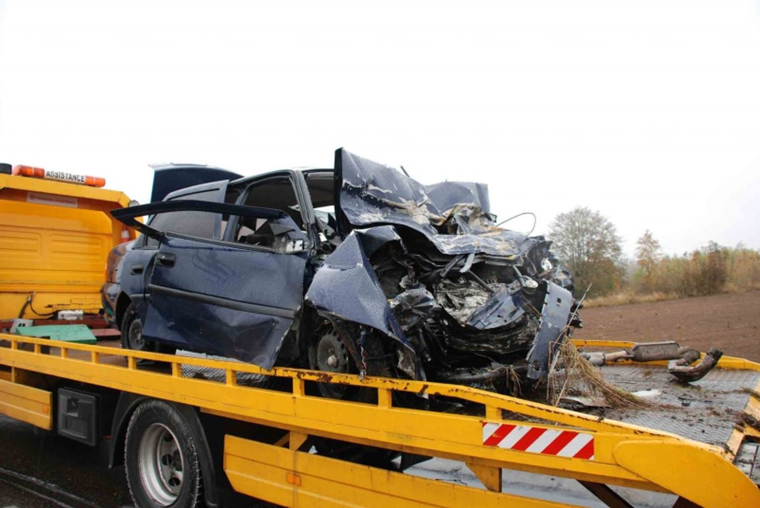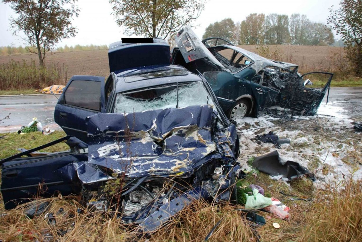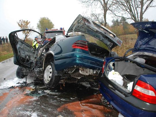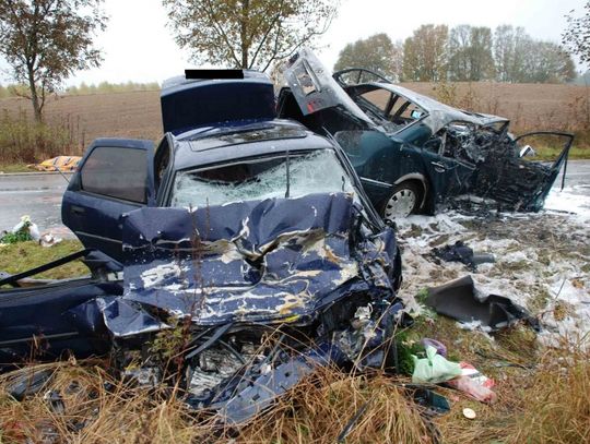 Do wypadku, w którym uczestniczył osobowy mercedes klasy E i opel vectra, doszło w czasie deszczu. Na miejscu zginęły dwie dorosłe osoby jadące mercedesem i podróżująca oplem trzyosobowa rodzina.