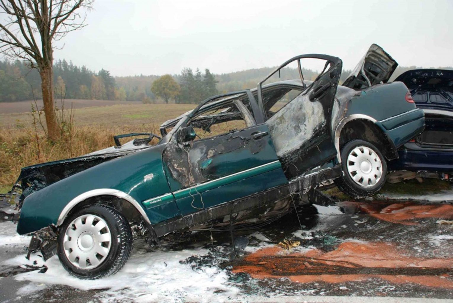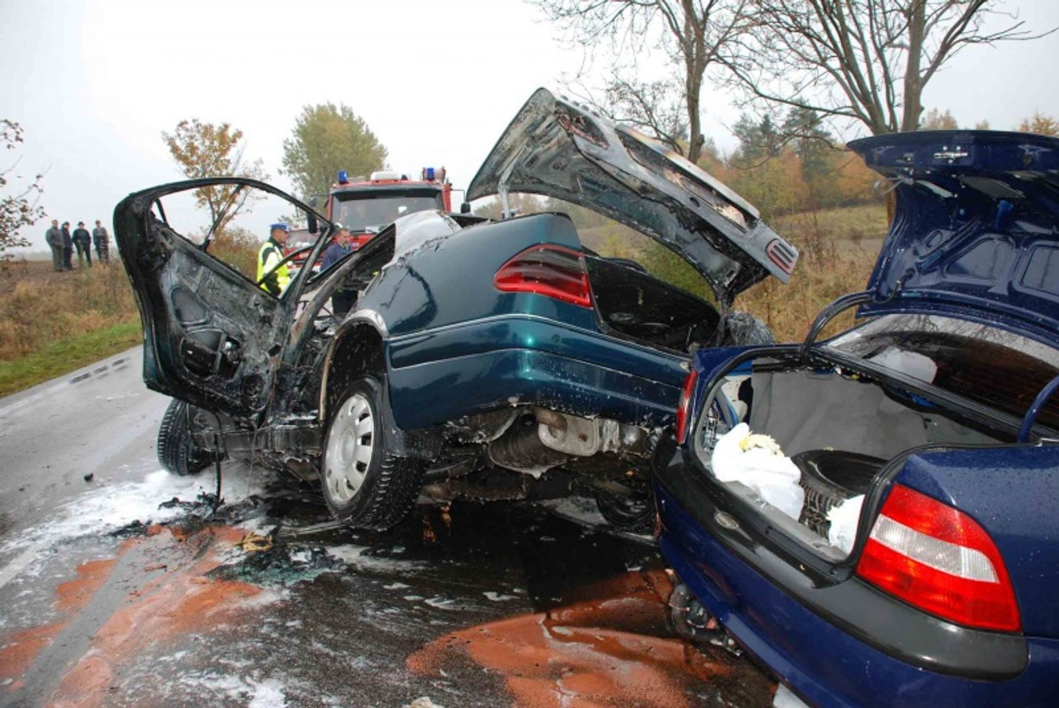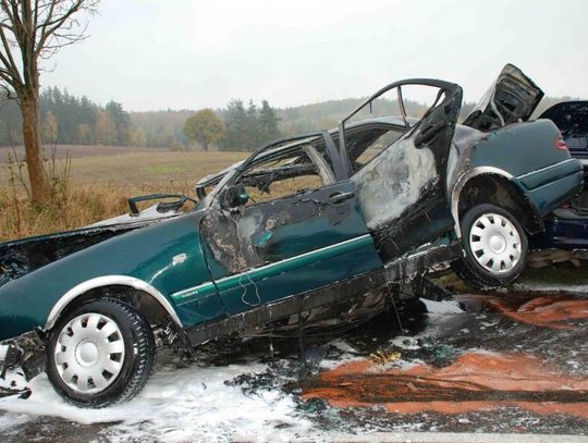 Wstępne ustalenia policjantów wykazały, że mercedes jechał w kierunku Borzytuchomia. Na prostym odcinku drogi auto zjechało na lewy pas ruchu i czołowo zderzyło się z oplem vectrą. Po zderzeniu mercedes zapalił się.
