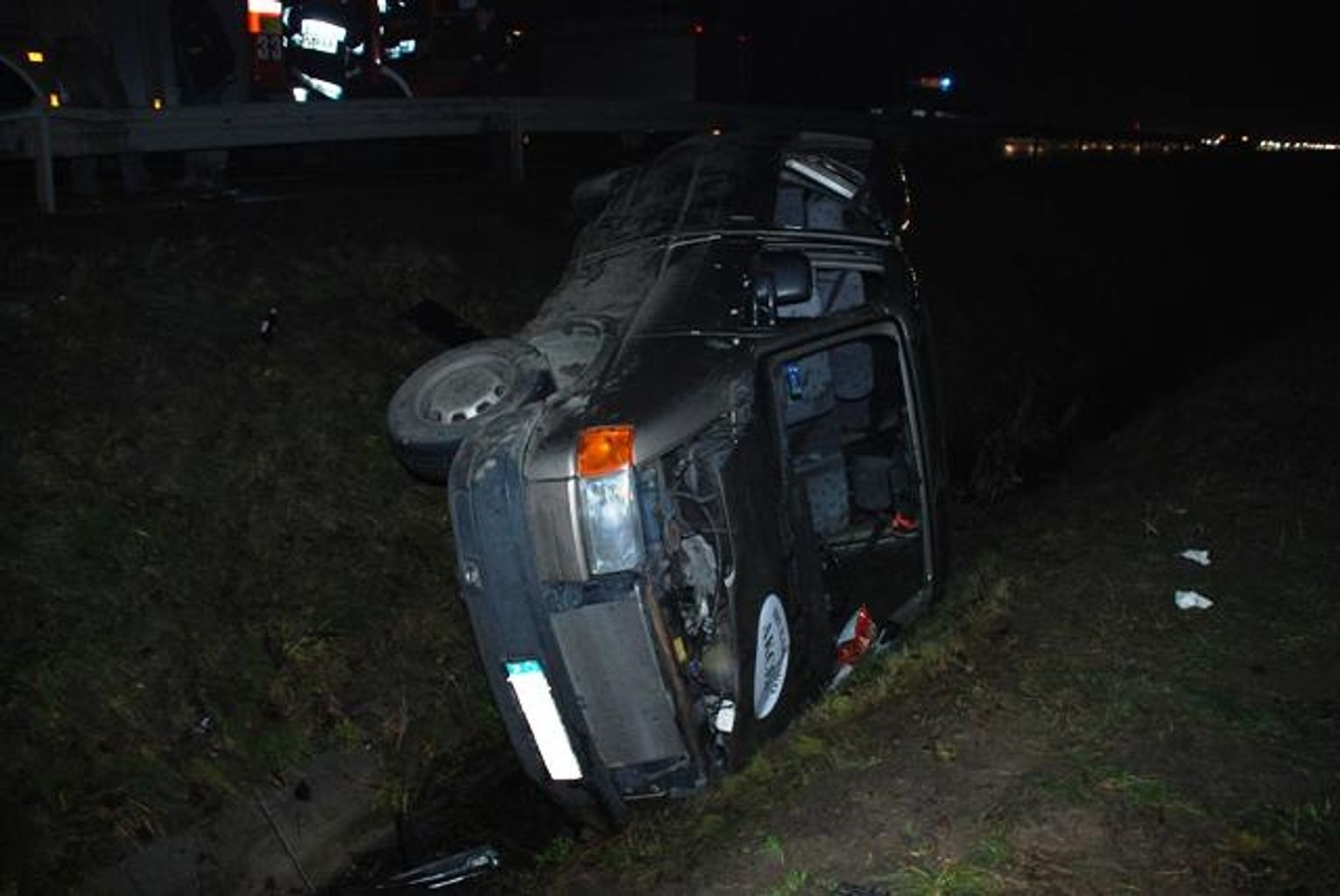 Wczoraj o godz.18.25 w Kiezmarku na drodze krajowej nr 7 kierujący mazdą 24-letni elblążanin jadąc w kierunku Gdańska podczas wyprzedzania zjechał na prawy pas i uderzył w bok wyprzedzanego vw carawella. 27-letni kierowca vw siłą uderzenia zjechał na pobocze, uderzył w bariery ochronne, po czym trzykrotnie dachując wjechał do przydrożnego rowu.