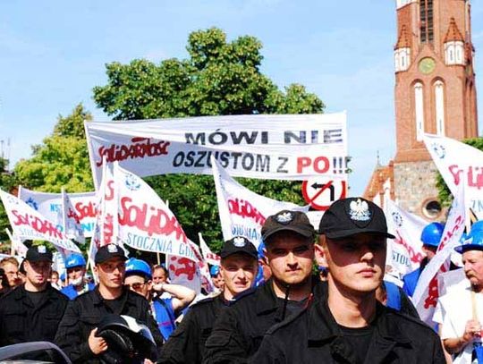 Związkowcy ze Stoczni Gdańsk protestowali przeciwko ewentualnej konieczności zwrotu pomocy publicznej, która grozi polskim zakładom. W sumie w grę wchodzi nawet 5 mld zł, a zakład w Gdańsku miałby zwrócić 750 mln zł. Zdaniem stoczniowców kwota jest znacznie zawyżona.