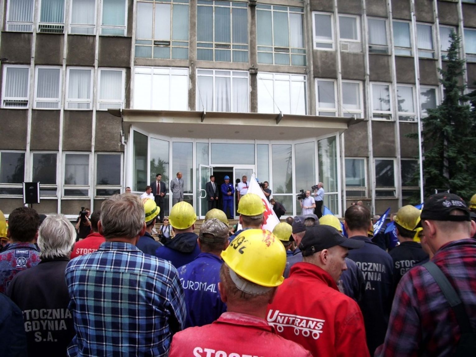 Ponad dwa tysiące osób czyli prawie wszyscy pracownicy pierwszej zmiany wzięli udział w pikiecie w obronie Stoczni Gdynia SA. Pikieta odbyła się podczas przerwy śniadaniowej. Rozpoczęła ją modlitwa "Pod Twoją Obronę".