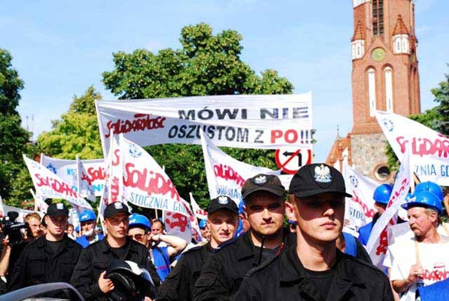 Podczas piątkowego wiecu, przewodniczący "Solidarności" stoczni Gdynia, szef Polskiej Sekcji Przemysłu Okrętowego "Solidarności" Dariusz Adamski przekonywał stoczniowców, żeby nie obawiali się sankcji karnych za udział w demonstracjach. "Rozpoczynamy bój, bo to jest naszym obowiązkiem. Podmiotem każdej firmy są ludzie i dlatego w środę wyruszamy w miasto" - mówił Adamski podczas wiecu.