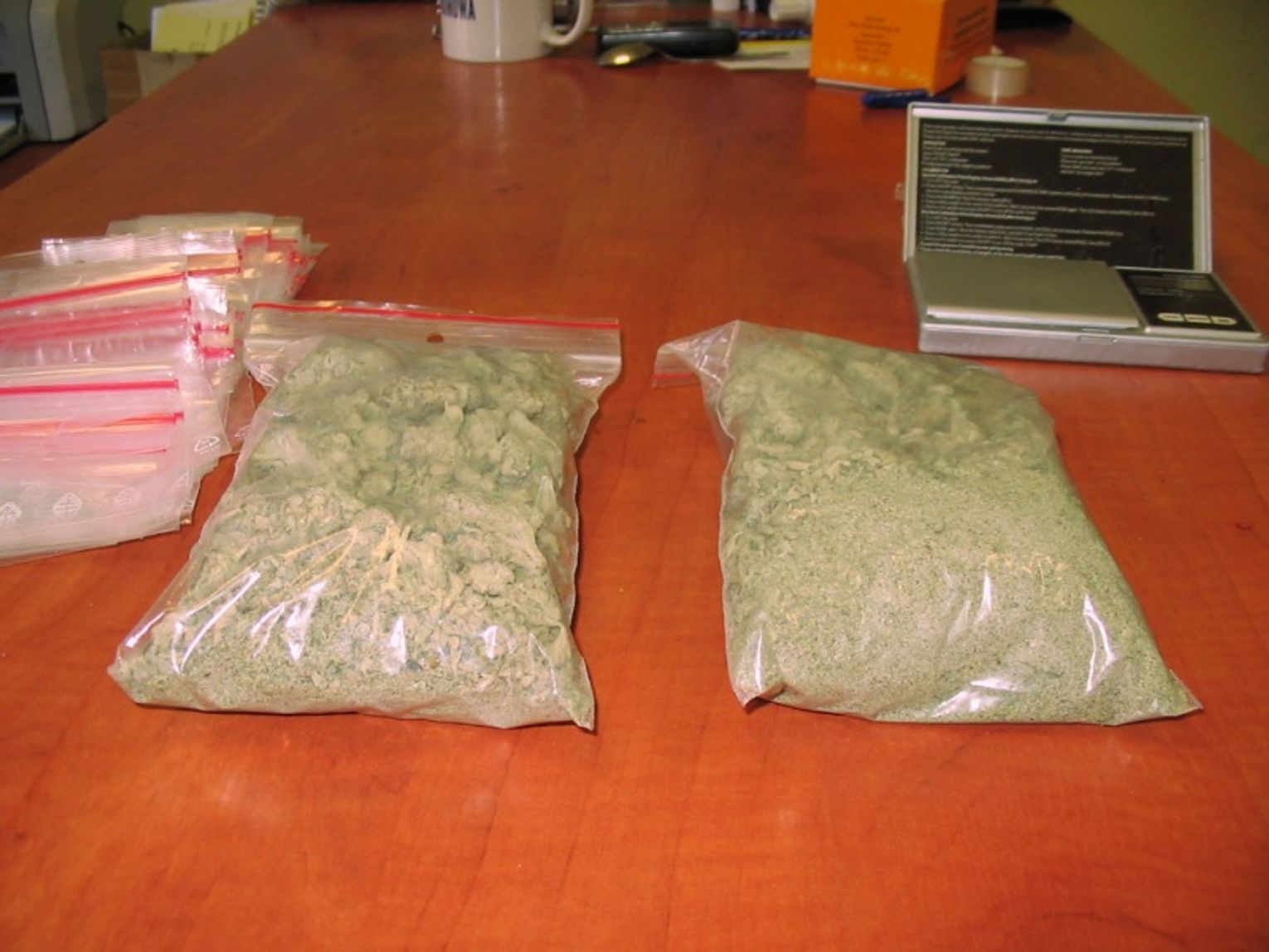 Podczas przeszukania mieszkania, w skrytce pod wanną, policjanci znaleźli dwa worki foliowe z suszem roślinnym. Badania wykazały, że to marihuana - ponad 200 gramów. W skrytce była też waga elektroniczna i ponad 70 pustych woreczków foliowych.