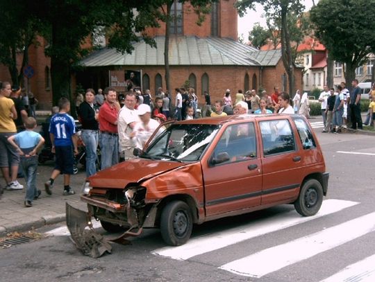Wczoraj około godz. 17 na skrzyżowaniu Alei Wolności i ul. Wyszyńskiego 21-letni mieszkaniec Lęborka jadąc z kolegą motorem MZ 150 wyprzedzał na skrzyżowaniu daewoo tico, który skręcał sygnalizując ten manewr. Doszło do zderzenia. Siła uderzenia wyrzuciła kierowcę motocykla i jego pasażera kilka metrów w powietrze.