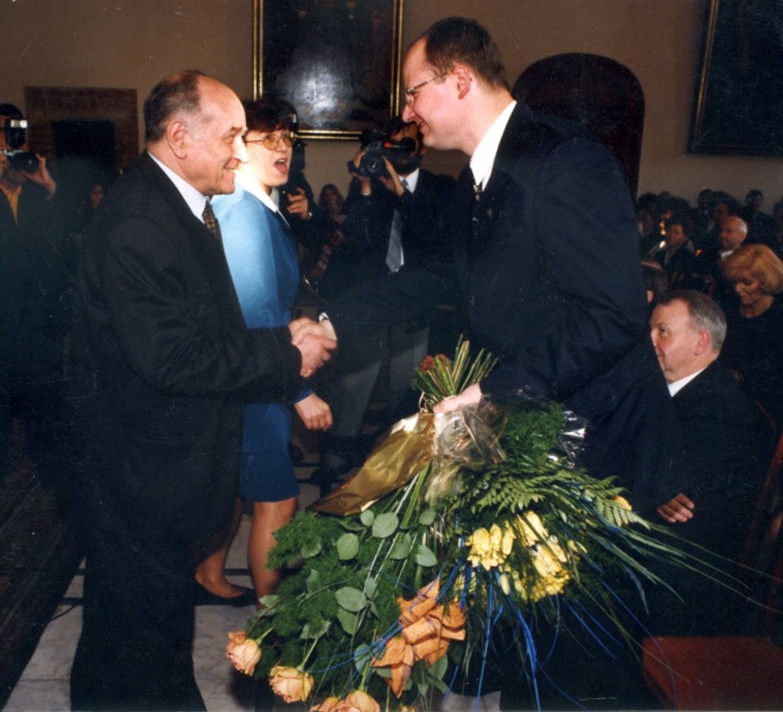 4. Jan Zarębski,wtedy marszałek pomorski z listy AWS i Paweł Adamowicz dobrze się czuli w swoim towarzystwie. Nawet wspólnie w Gdyni odwiedzali lidera SLD Jerzego Jędykiewicza. Dobra whisky łączyła w biurze przy ul. Świętojańskiej polityków prawej i lewej flanki. Stojąca obok wywodząca się z UW radna Małgorzata Chmiel uznała niepodziewanie jubileusz gdańskiego włodarza za przesadzony..