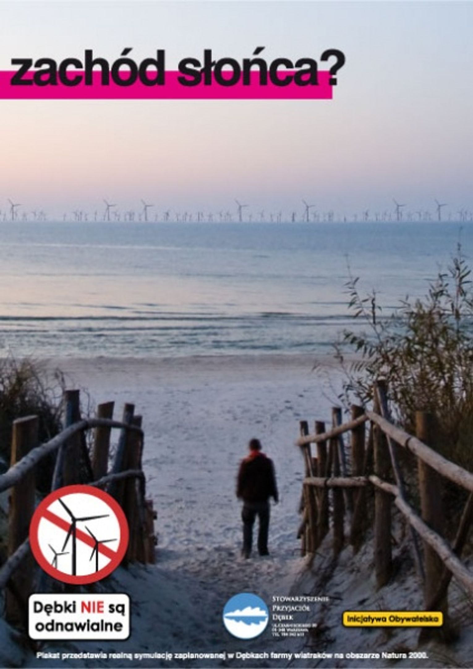 Stowarzyszenie "Dębki nie są odnawialne" organizuje akcje obywatelską przeciwko budowie elektrowni wiatrowych w Dębkach (pow. pucki). Przygotowano dla zainteresowanych wersje listu protestacyjnego, który można wysłać oficjalnie do Wojewody Pomorskiego.