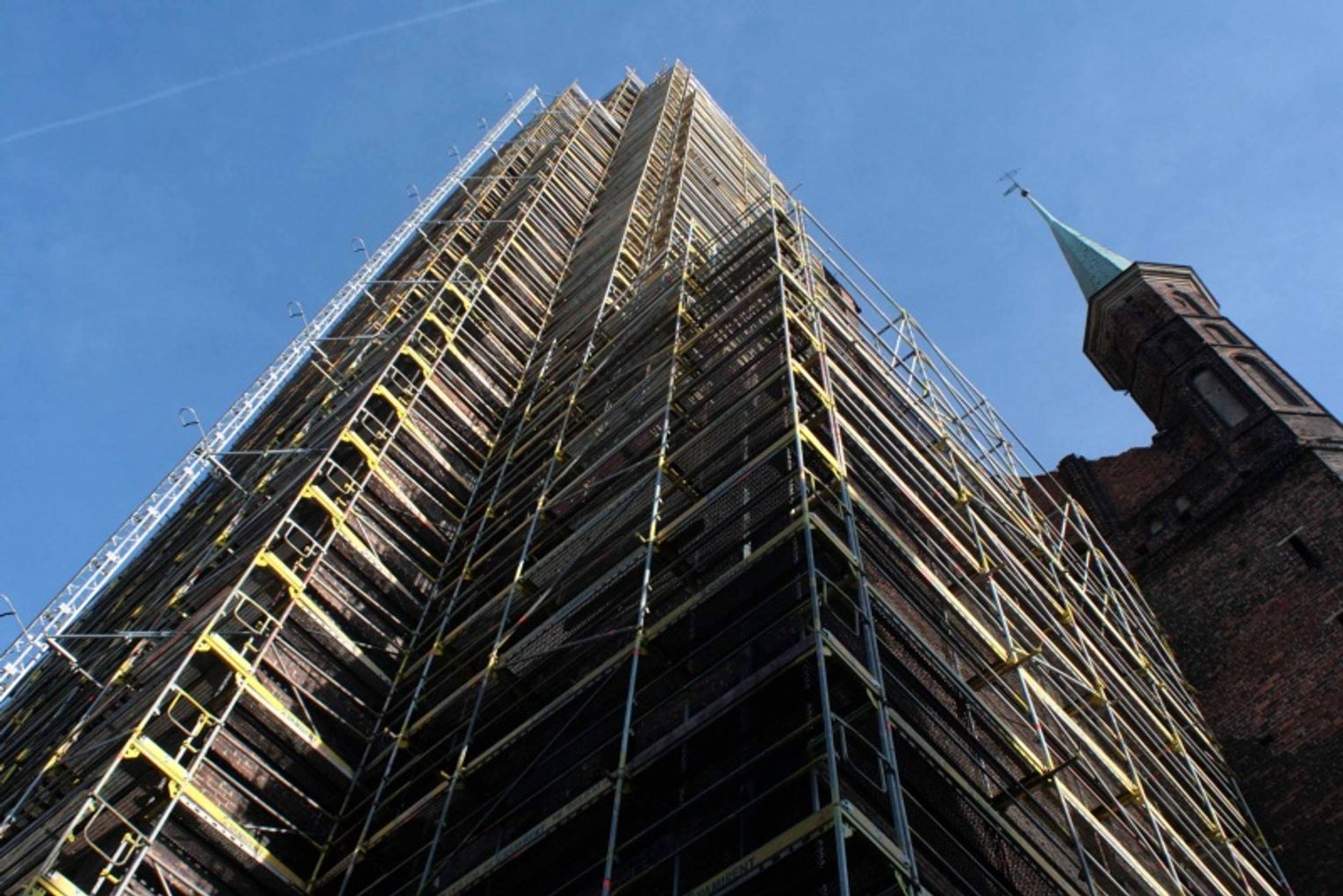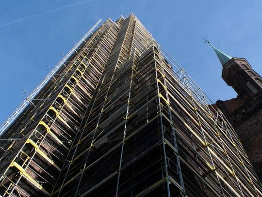 GDAŃSK. Gruntowna renowacja. Na około trzy lata wieża bazyliki Mariackiej w Gdańsku zasłonięta będzie rusztowaniami. Trwa gruntowny remont i konserwacje tej części kościoła – murów, ścian i dachów.