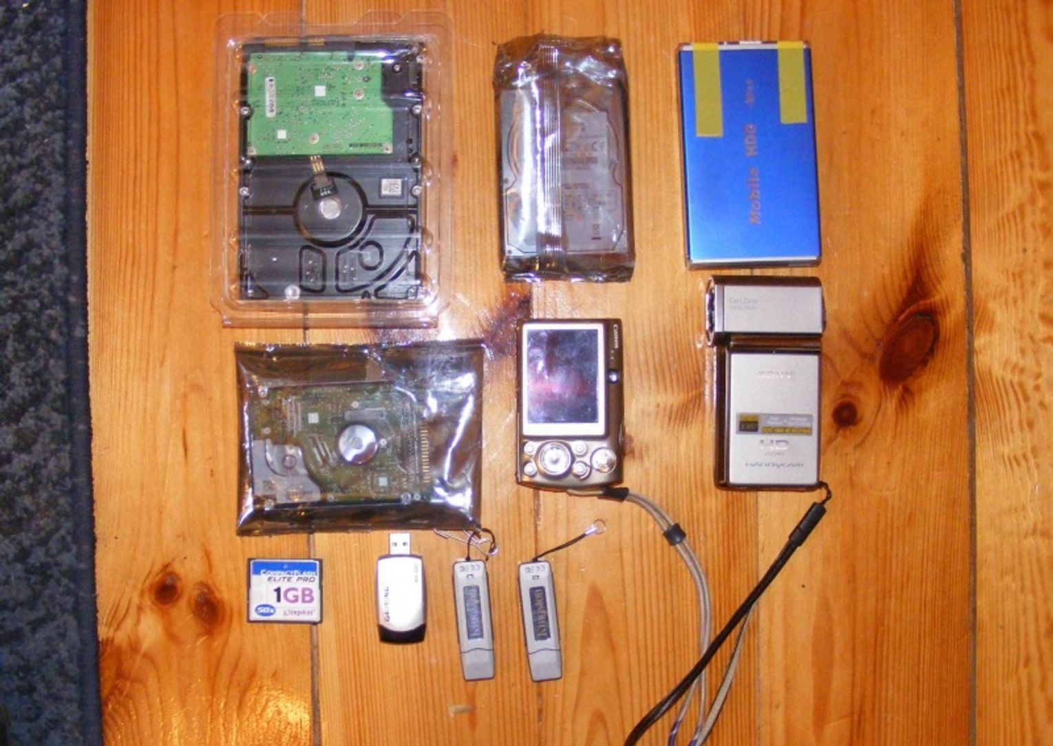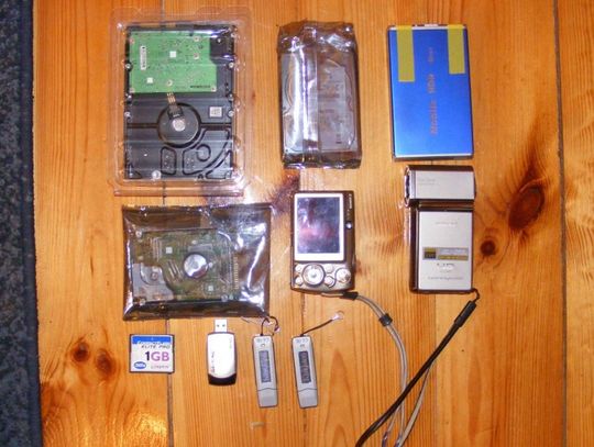 Podczas przeszukania w mieszkaniu u 27-letniej Emilii G. i 50-letniego Dariusza G. policjanci zabezpieczyli dwa laptopy, sześć dysków, około 250 płyt CD i DVD, a także aparat fotograficzny i kamery cyfrowe, które były wykorzystywane przy produkcji plików pornograficznych z udziałem zwierząt.