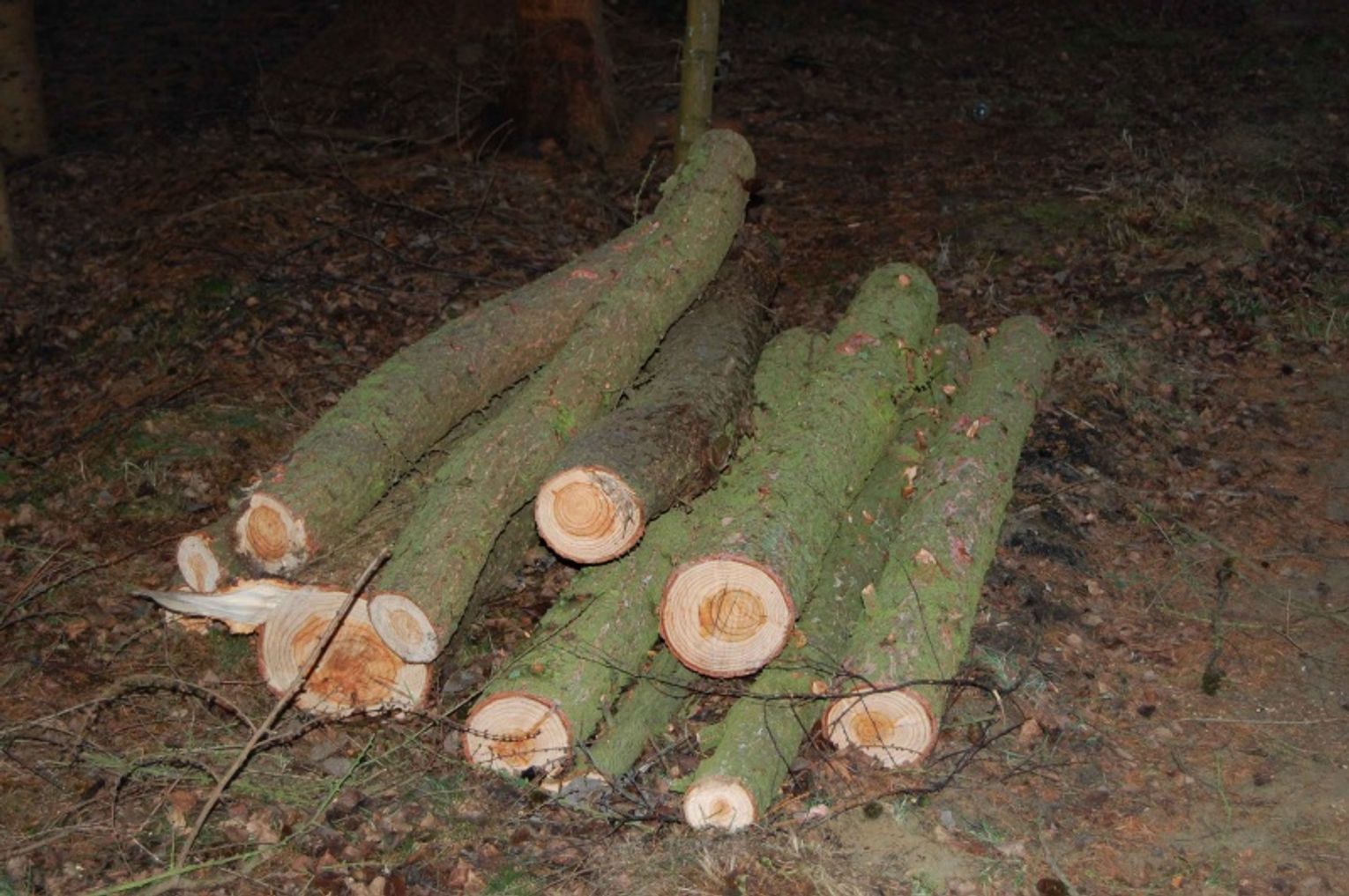 Mężczyźni wycięli drzewka brzozy i modrzewia. Wartość strat znana będzie po konsultacji z Nadleśnictwem Wejherowo. Za nielegalne wycięcie drzewa w lesie grozi do 5 lat pozbawienia wolności. (KWP)
