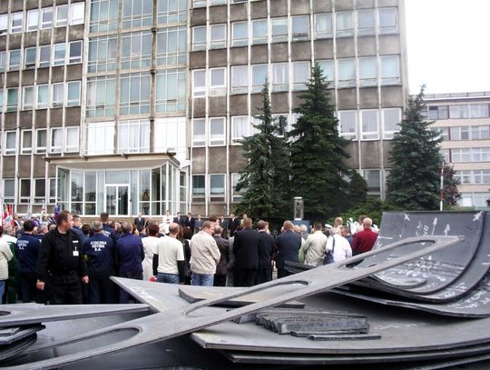 GDYNIA. Trwa procedura prowadząca do likwidacji Stoczni Gdynia. Pracownicy otrzymali propozycje "nie do odrzucenia" - dobrowolne złożenie oświadczenie, ze chcą odejść z pracy (za odszkodowaniem). Z inicjatywy związkowców z "Solidarności" rozpoczęli odmawianie różańca w intencji uratowania Stoczni. "Miej w opiece stoczniowców" - taka modlitwa znajduje się na figurce Matki Boskiej Stoczniowców.