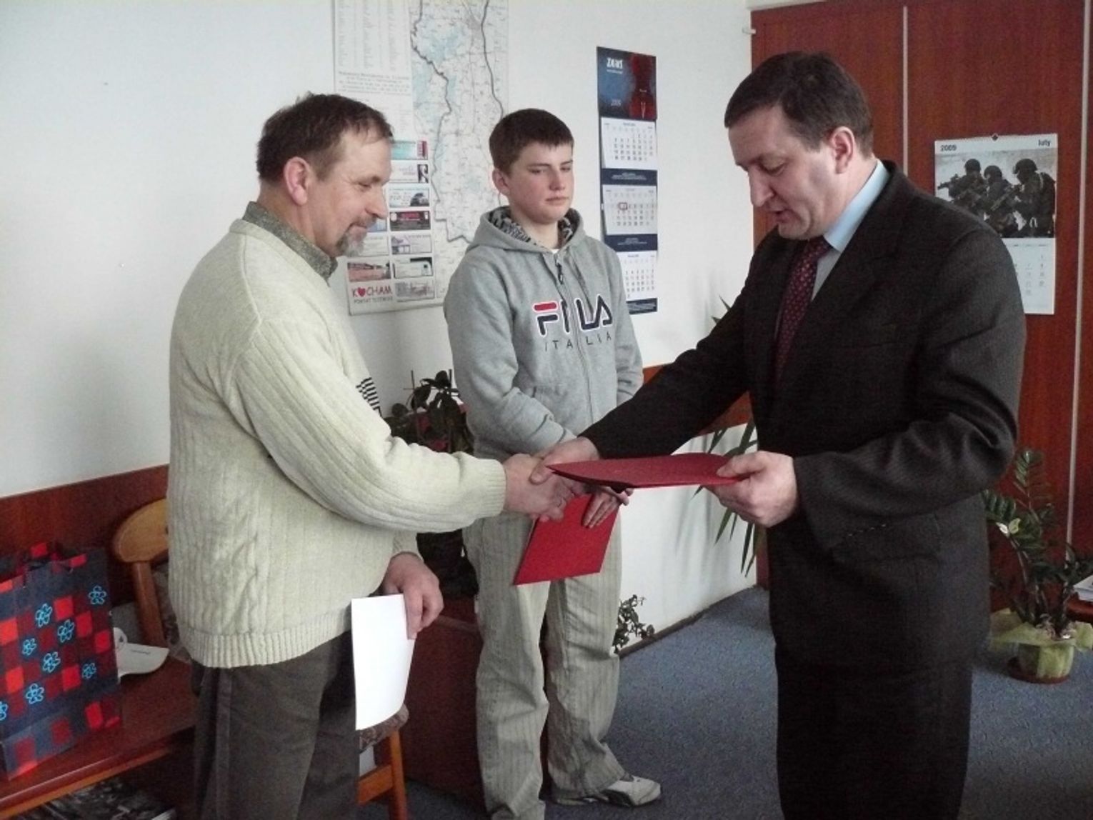 23 grudnia 2008 r. - ten dzień niewątpliwie zapadnie na długo w pamięci mieszkańców wsi Subkowy w powiecie tczewskim. Kilka minut po godzinie 18.00 wybuchł tam pożar jednego z budynków, w którym mieszkało starsze rodzeństwo - 73 letnia kobieta i jej o rok młodszy brat. Ogień jako jeden z pierwszych zauważył 17-letni Piotr Czerwiński mieszkający z rodzicami w sąsiedztwie domu, gdzie wybuchł pożar. Chłopak bez wahania pobiegł na ratunek starszym ludziom. Po chwili dołączyli do niego p. Tadeusz Żółtek i jego syn Andrzej Żółtek, którzy akurat wykonywali w gospodarstwie Czerwińskich prace budowlane. Mężczyźni z narażeniem własnego życia wyciągnęli z płonącego domu starszych ludzi. Po tym ratowali jeszcze ich dobytek.