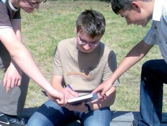 - Zdobyte punkty mamy w głowie. Pamięć matematyczna przydaje się - żartuje Maciej i podaje wyniki całej trójki. - Oskar ma średnią ocen 5,06 i zebrał w sumie 147 punktów. Z testów ma 83 punkty a ze świadectwa 64 punkty. Ja mam średnią ocen 5,25 i uzbierałem w sumie 161 punktów. Testy napisałem na 89 punktów a ze świadectwa mam 72 punkty. Najwięcej punktów nałapał Paweł. On jest najlepszy z nas. Średnią ocen uzyskał super bo aż 5,75. To prawie same szóstki. Punktów natomiast ma o 10 więcej ode mnie czyli 171 bo dostał dodatkowe punkty za to, że jest laureatem wojewódzkiego konkursu.