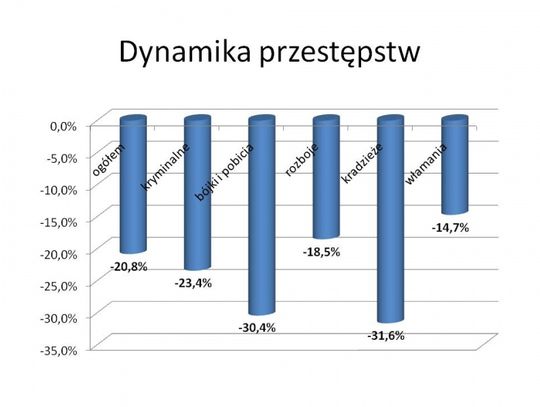 Analizując dane statystyczne za pierwsze dwa miesiące tego roku w porównaniu do roku ubiegłego, należy zwrócić uwagę na fakt, że w całym województwie dynamika przestępstw ogółem spadła o blisko 21%.
