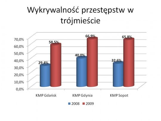 W ciągu ostatnich dwóch miesięcy pomorska policja odnotowała znaczny wzrost wykrywalności ogólnej przestępstw. O dużej poprawie można mówić zarówno w samym Trójmieście jak i wszystkich pozostałych jednostkach terenowych Policji.