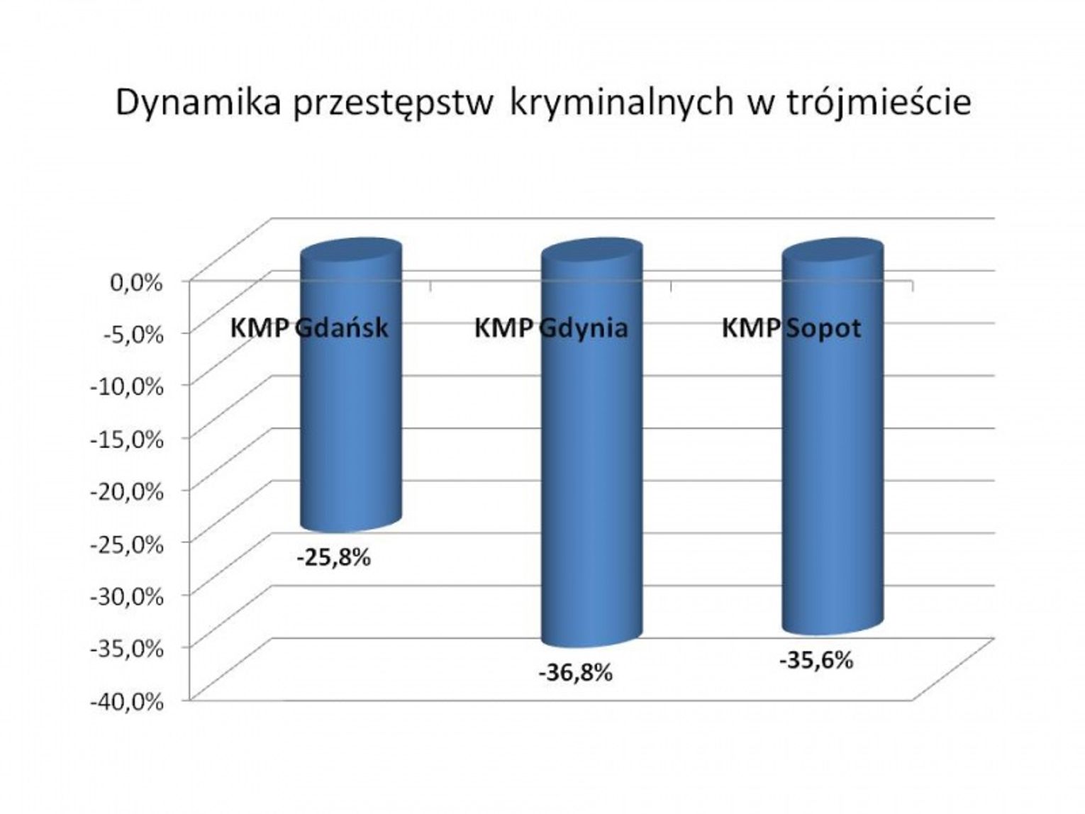 Wzrost wykrywalności i spadek liczby przestępstw bardzo wyraźnie zarysował się także w samym Trójmieście. Policjanci z Gdańska, Gdyni i Sopotu znacznie ograniczyli przestępczość zarówno pod kątem kryminalnym jak i prewencyjnym.