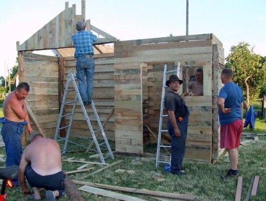 Wszystko zostało zaplanowane i przemyślane przez Katarzynę Koenig. Drewno przywiózł za darmo Krzysztof Pelowski z Bolesławowa. Drewno pochodzi także z tartaków w Demlinie i Siwiałce.