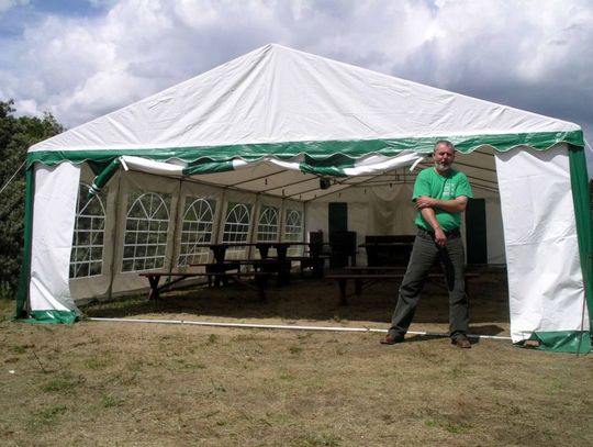 Świetlica. Tu też obaj panowie znaleźli sposób. Ze szkoły nie można przecież jej zrobić. Ta, która była, za zgodą Rady Sołeckiej została sprzedana. Z perspektywy czasu widać, że był to fatalny błąd. Dziś wsi nie stać na zbudowanie nowej. Trochę ich denerwuje, że gmina buduje za 100 tysięcy złotych w Czarnem, gdzie mieszka kilkanaście rodzin i skąd młodzież emigruje do miasta za pracą. A w Piecach młodzież spotyka się przed barami i sklepami. Więc kupili namiot.