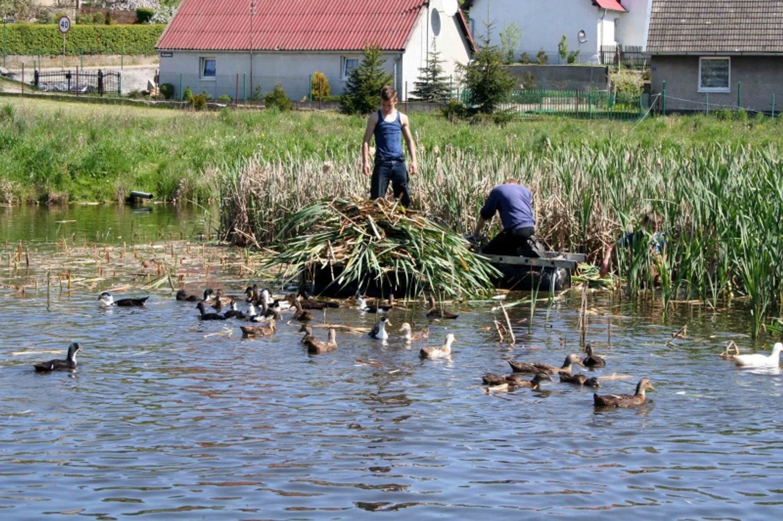 - W zeszłym roku hodowałem kaczki. Miałem ich 50 – opowiada Kłos. - Wyławiałem rzęsę ze stawu. Minimum taczkę dziennie dla 50 kaczek i kur. A on cały czas zarastał. Rzęsą i trzciną. Rzęsy nie ubywało. Zimą mieliśmy spotkanie w naszej chacie kociewskiej (ta chata to wiejski zabytek – przyp. red.). Rozmawialiśmy luźno. Zaproponowałem: po co mam wozić rzęsę, kiedy naturalniejsze będzie, jak kaczka zje ją w wodzie i to świeżą? Nikt się nie sprzeciwił. Rada Sołecka wyraziła zgodę. Na tym spotkaniu był też wójt. To było przy okazji, gdy rozmawialiśmy o porządkowaniu cmentarza... Na wiosnę zakupiłem kaczki. Tym razem 90. Odchowałem je u siebie do momentu, kiedy dostały pióra i wpuściłem je do tego stawu. I są tam dzień i noc. Po dwóch tygodniach staw był wyczyszczony z rzęsy.