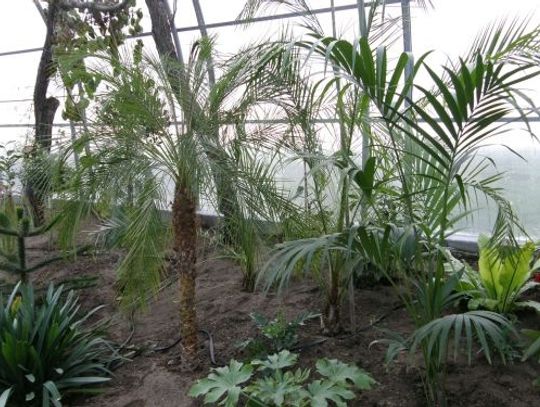 Kociewska palmiarnia to realizacja pomysłu Huberta Kopciowskiego. Powstała na terenie bardzo ciekawego kompleksu ogrodowego „Polskie Ogrody Ozdobne”, także stworzonego przez pana Huberta. Przypomnijmy, że otwarty już obecnie dla zwiedzających obiekt palmiarni jest dopiero pierwszą częścią inwestycji. Docelowa jej powierzchnia ma osiągnąć 400 m kw. Wysokość już istniejącego obiektu wynosi około 5 m. Mimo że w konstrukcji użyto pleksiglasu a nie szkła, sprawia ona wrażenie bardzo schludnej, nowoczesnej i wytrzymałej, a przy tym powinna mieć dobre właściwości termoizolazyjne. Wewnątrz ciągle jeszcze trwają prace budowlane, ale już na pierwszy rzut oka widać, że gdy świeżo posadzone rośliny zakorzenią się na dobre, szybko zaczną rosnąć tworząc zwartą gęstwinę. Już w chwili obecnej można oglądać kilka gatunków okazałych palm i wiele innych egzotycznych roślin. Wzdłuż głównej ścieżki pojawiły się tabliczki z opisem stref klimatycznych, z których wywodzą się prezentowane rośliny. Nieopodal basenów pojawiła się wielka klatka. Można w niej obserwować egzotyczne papugi: nimfy i papużki faliste. Przypomnijmy, że docelowo palmiarnię ma zasiedlać wiele egzotycznych zwierząt: zarówno ptaków jak i gadów. Dwa oczka wodne są już wypełnione wodą. Można w nich podziwiać hiacynty wodne i pistię rozetkową – egzotyczną roślinę przypominającą nieco pływające po wodzie główki sałaty. Znajdą w nich miejsce życia także kolorowe, egzotyczne ryby. Hubert Kopciowski w przeprowadzonej dwa miesiące temu rozmowie tłumaczył, że został zmuszony do wcześniejszego otworzenia palmiarni przez zniecierpliwionych znajomych, którzy nie mogli się już jej doczekać. Mimo że w palmiarni ciągle jeszcze trwają prace ogrodnicze i remontowe, już teraz stanowi ona wraz z kompleksem ogrodów jeden z ciekawszych miejsc do zwiedzania na Kociewiu.