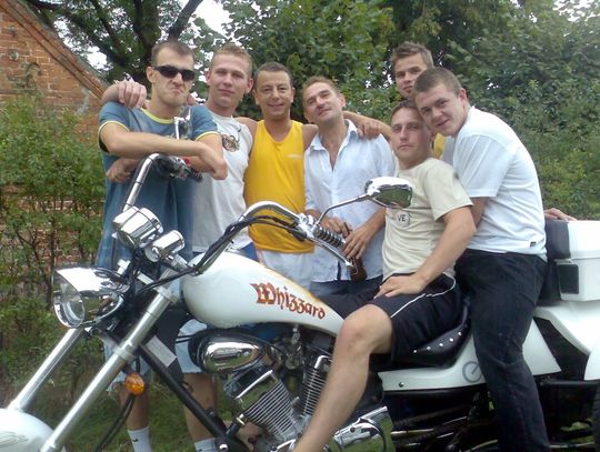 - Tak nazywamy motocykle trzykołowe. To są rewelacyjne maszyny. Wygodne i niewywrotne - informują motocykliści. - Nasz model ma dosyć skomplikowany życiorys. Papiery są hiszpańskie, silnik jest japoński a rama jest niemiecka. Całość jednak prezentuje się pięknie. To nie jest najszybszy motocykl. Ma silnik o pojemności tylko 250 cm sześciennych. Jest więc raczej motocyklem turystycznym. On ma nawet wsteczny bieg. Bardzo łatwo się prowadzi. Jest elegancki i wygodny. Sprowadziliśmy go z Niemiec. Prosto z salonu. Szykujemy go do parady motocykli. Do Skórcza. To prestiżowa parada. Będą tam wszyscy miłośnicy i posiadacze motocykli z okolicy. Organizuje ją Krzysiu Telesat. On ma pięknego choppera. Jego żona, Ania też jeździ motocyklem. Pięknie wygląda w motocyklowym, skórzanym stroju. Nasz trikes też musi pięknie wyglądać na paradzie. Do zobaczenia w Skórczu.