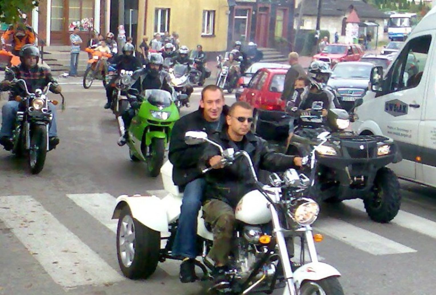 Zawyła strażacka syrena dając sygnał do startu. Warkot motocyklowych silników zagłuszył syrenę. Kawalkada ruszyła. Powoli, majestatycznie. Dwukołowe, trzykołowe a nawet czterokołowe pojazdy osiodłane przez jeźdźców w czarnych skórach prezentowały się bardzo atrakcyjnie. Rozległa się burza oklasków.