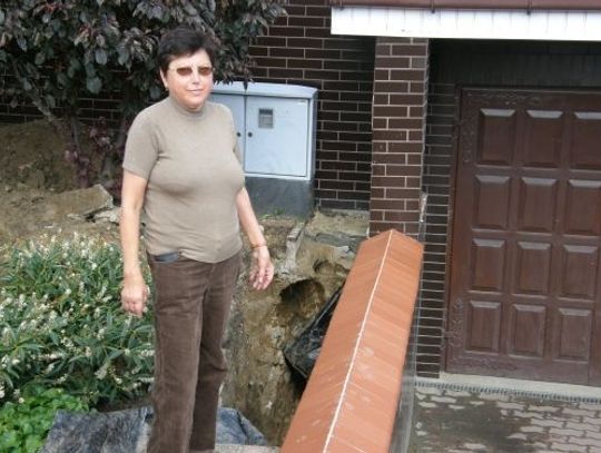 - Tak. Te studzienki nie dają rady jej odprowadzać i my też jesteśmy zalewani – tłumaczy Teresa Wałaszewska. - Nie wierzę, że pisma do UM coś dadzą. Postanowiliśmy zabezpieczyć się na własny koszt. Jestem inwalidką pierwszej grupy. Gdzie ja będę teraz wodę z garażu wylewała? A już raz musiałam. Ostatnio w czasie ulewy męża nie było w domu. W garażu było już wody do połowy kół samochodu. Kiedy przychodzi ulewa, nie ma wyboru - tabletka przeciwbólowa i trzeba wylewać. Obecnie zamontujemy z boku wjazdu do garażu duży osadnik, który będzie przyjmował nadmiar wody. Ten wykop, co go tu widać, właśnie temu ma służyć.