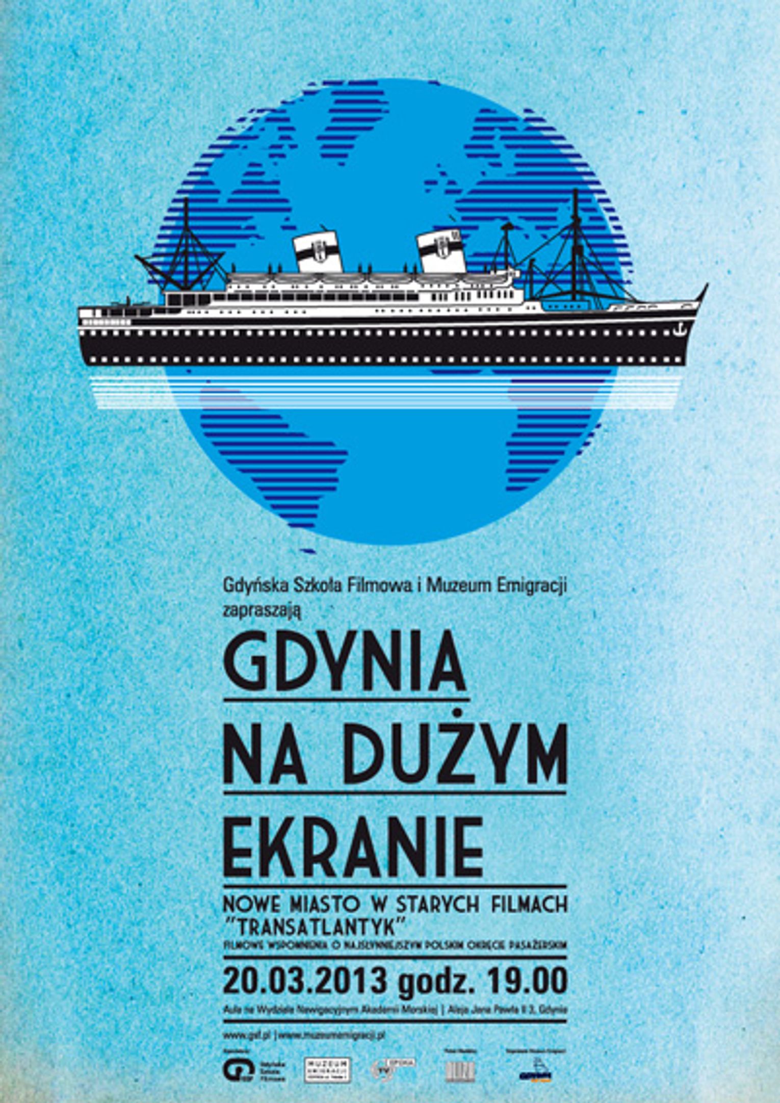 Spotkanie „GDYNIA NA DUŻYM EKRANIE: Transatlantyk” przygotowały: Gdyńska Szkoła Filmowa, Muzeum Emigracji w Gdyni i Epoka TV. Partnerem medialnym projektu jest kwartalnik literacki „Bliza”.