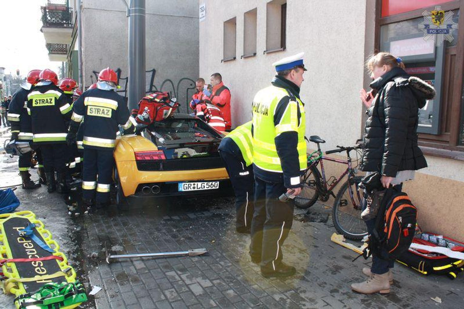 Kierowca lamborghini i rowerzysta z urazami kończyn zostali natychmiast przewiezieni do szpitala. Na miejscu pracowali policjanci, którzy prowadzili oględziny i ustalali szczegóły i przyczyny zdarzenia. Droga w miejscu wypadku była całkowicie zablokowana.