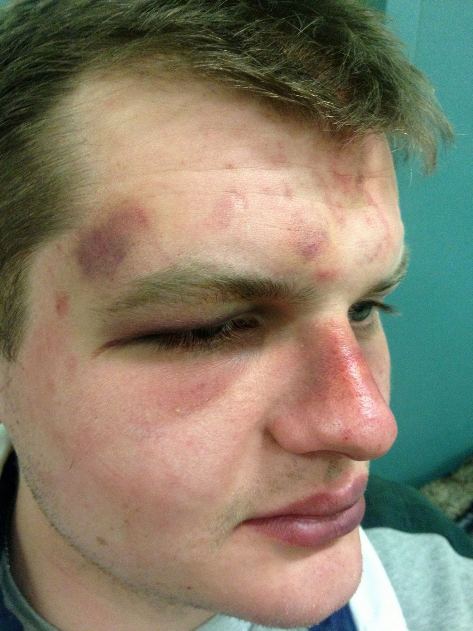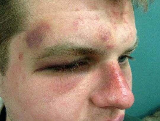 Daniel Ż. udał się do lekarza, na obdukcję. Lekarz wydał zaświadczenie, potwierdzające, że pacjent ma obrażenia ciała wynikające z pobicia: złamany nos, skruszony ząb, siniaki i ślady (po paralizatorze?), obrzęk mózgu (!). Żona zrobiła dokumentację stanu męża po powrocie z policji- zdjęcia pobitej twarzy, głowy… Wygląda to makabrycznie!