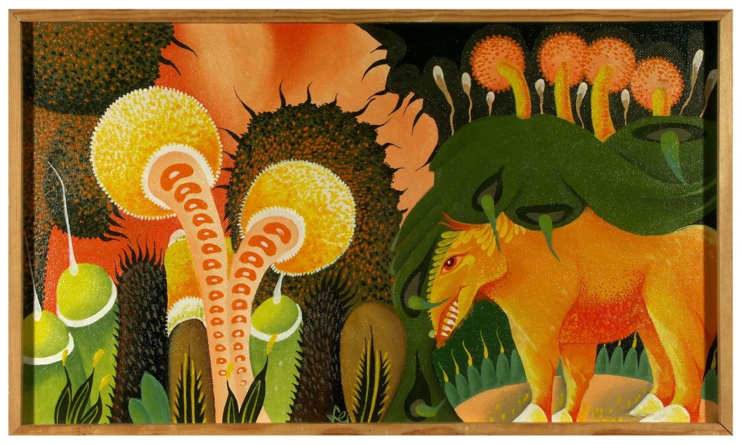 Równolegle uprawiał w domu własne, zupełnie inne malarstwo. Tu uciekał od szarej, nużącej rzeczywistości w świat czystych, wyrazistych barw, realnych i nierealnych, baśniowych wręcz postaci i krajobrazów, wątków mistycznych i religijnych, zawieszonych w nieokreślonym czasie i przestrzeni, w sztafażu stylizowanej roślinności. Powstawały obrazy będące wyrazem jego nieograniczonej wyobraźni, przetwarzającej codzienne wydarzenia, zjawiska z otaczającego świata na malarskie wizje z pogranicza snu i jawy. W swoim malarstwie stworzył indywidualny, rozpoznawalny styl. Posługiwał się z powodzeniem różnymi technikami malarskimi i rysunkowymi: tempera, olej, akwarela, tusz, piórko, ołówek.