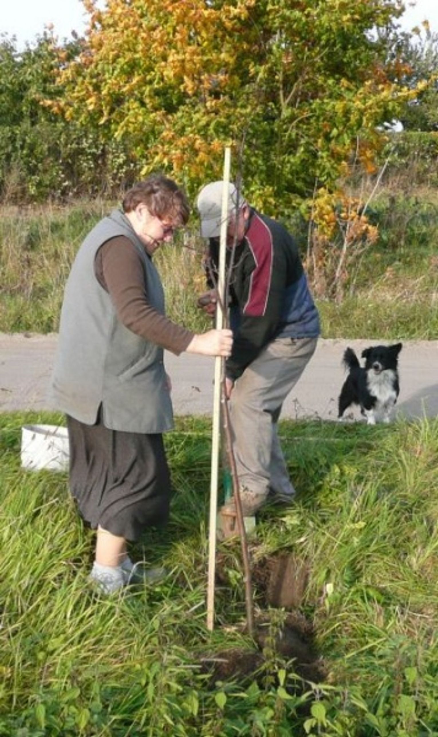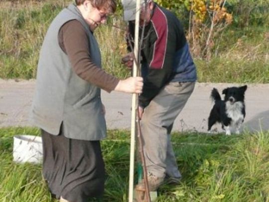 Drzewka już są, potrzeba tylko wolontariuszy, którzy je posadzą. W tym miejscu z dumą piszę: na pączewiaków można liczyć! Nasza bezkonkurencyjna sołtys Halina Wika – bez wątpienia zasługująca na miano Kobiety Kociewia – jednym telefonem do niezawodnego naczelnika OSP Andrzeja Czubka załatwia do pomocy młodzieżową drużynę OSP z Pączewa. Do gromadki dołącza jeszcze gospodyni z KGW Teresa Cejrowska. Uzbrojeni w łopaty, wiadra i taczkę pełną sadzonek ruszamy sadzić drzewka.