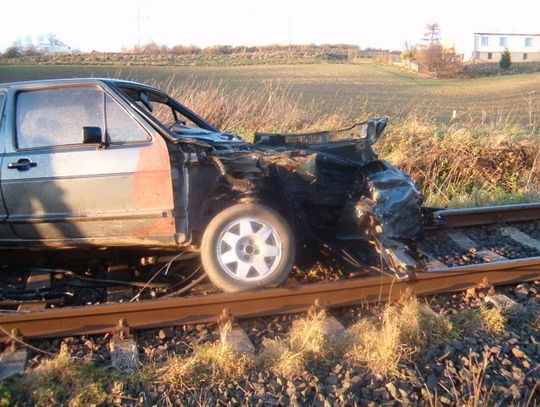 O dużym szczęściu może mówić kierowca osobowego volkswagena, który wczoraj po południu na niestrzeżonym przejeździe kolejowym w Zdunach próbował przejechać przez tory kolejowe tuż przed pociągiem relacji Chojnice-Tczew. W wyniku zderzenia przód golfa został całkowicie zniszczony, lecz kierowcy nic się nie stało.