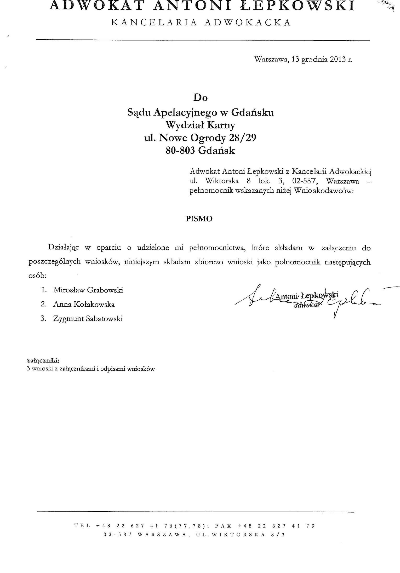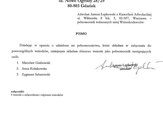 W proteście na 24-letnią bezczynność Sejmu, Senatu i Rządu w sprawie zadośćuczynienia za represje w stanie wojennym, dziś w 32. rocznicę wprowadzenia stanu wojennego 25 członków Stowarzyszenia Godność - więźniów politycznych za pośrednictwem pełnomocnika mec. Antoniego Łepkowskiego z kancelarii Adwokackiej z Warszawy złożyło w Sądzie Okręgowym w Gdańsku pozwy o odszkodowanie.