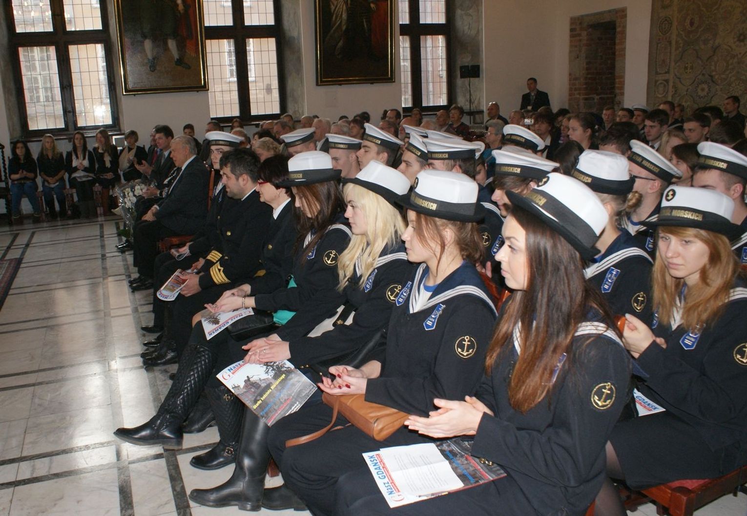 W Wielkiej Sali Wety Ratusza Głównego Miasta gorącymi owacjami przywitano Profesora, któremu asystowały dwie panie w strojach starogdańskich. Licznie zgromadziła się młodzież z trójmiejskich szkół o profilu morskim.