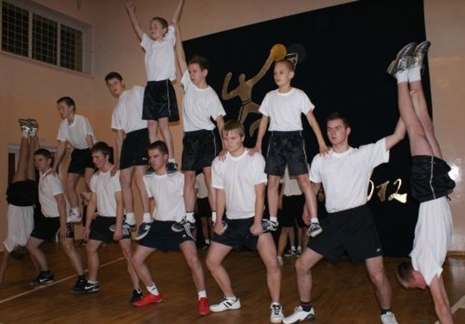 Kiedy zakończyli swój pokaz sprawności fizycznej gimnastycy i akrobaci przygotowani przez p. Ewę Ossowską, na sali rozległy się gromkie brawa i okrzyki podziwu. Z wielką uwagą śledziliśmy też przepiękny występ uczennic z klas 5 i 6 w tańcu emitującym grę w hokeja oraz gimnazjalistek w układzie gimnastycznym na stepach. Podziękowania za przygotowanie tych gimnastyczek należą się p. Justynie Prychła i Ewie Gromowskiej.