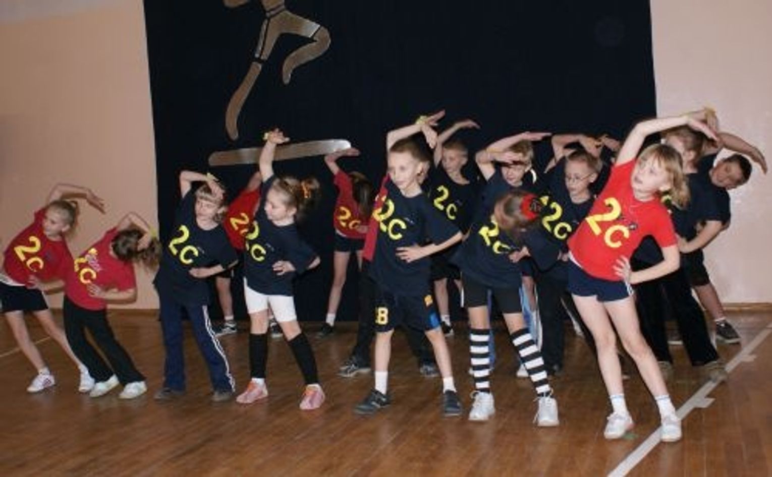 Bardzo miłym akcentem programu był występ najmłodszych uczniów naszej szkoły. Klasa 2c p. Felicji Gołuńskiej popisała się, pokazując wzorcową gimnastykę.