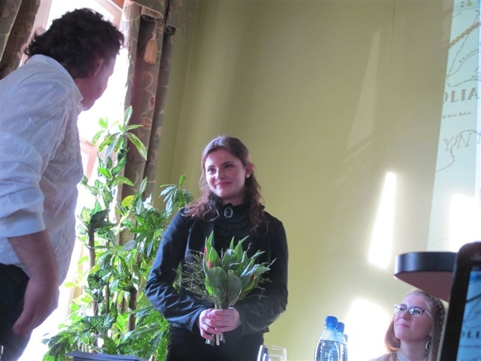 - Ludową ukraińską pieśń zaśpiewała Anastazja Połtawska, Ukrainka z Sum, która wraz z rodzicami od kilku lat mieszka we Wrzeszczu. Otrzymała burzę oklasków, podszedł do niej z bukietem kwiatów Giennadij Jerszow, ukraiński artysta rzeźbiarz z Czernihowa, od kilkunastu lat zamieszkały z rodziną w Gdańsku i powiedział: „Dziękuję ci za pieśń, miło słyszeć ukraiński język”. Po spotkaniu otoczyła Anastazję rodzina Edwarda Kajdańskiego, nie bez powodu, w Sumach żył i pracował Edward Jan Kajdański, ojciec naszego Bohatera, a Kasia, z domu Kajdańska, przebywała niedawno w Sumach i odnalazła miejsca z dziadkiem związane.