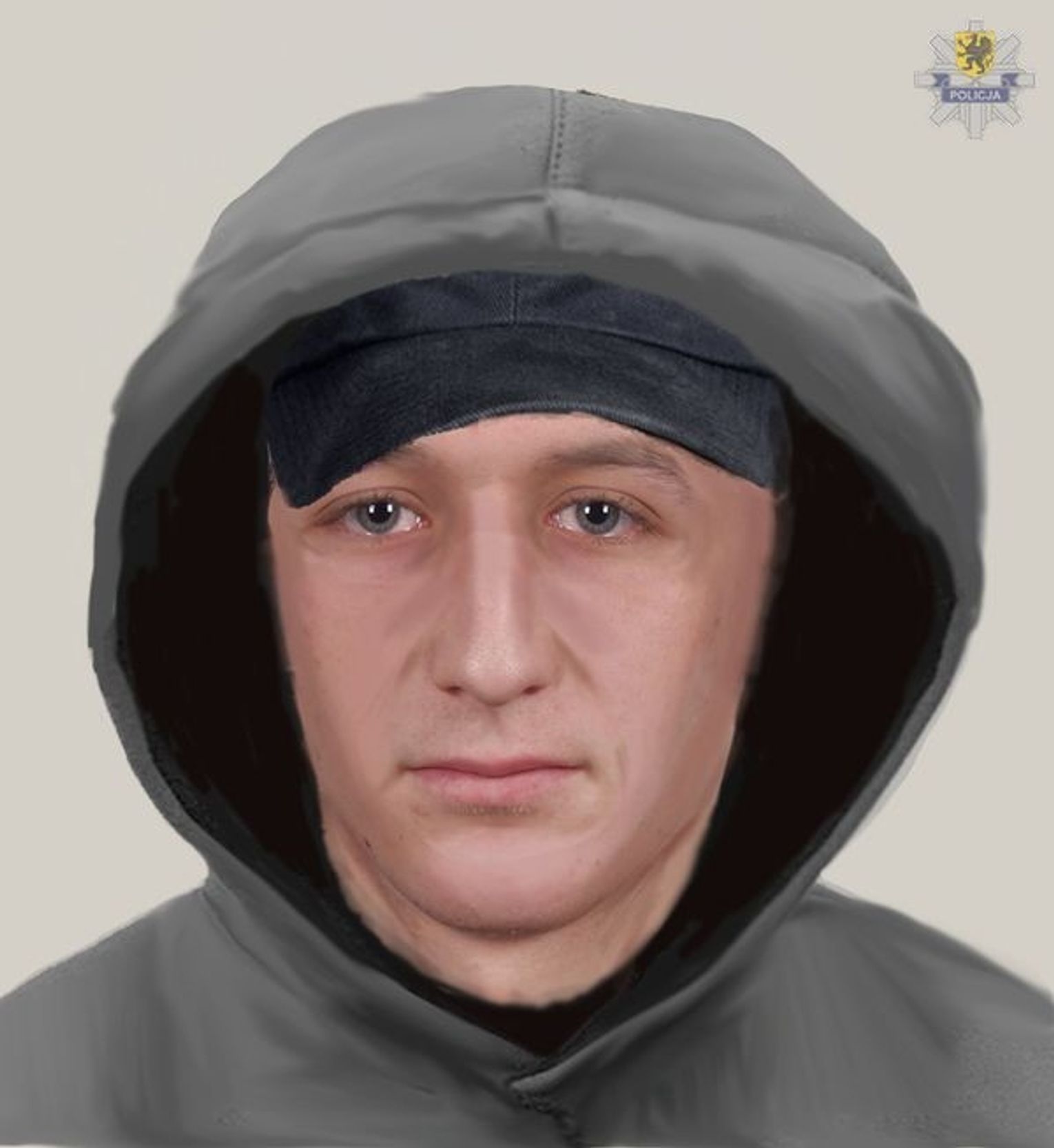 Portret nr 5 – mężczyzna w wieku ok. 30 lat, wzrost ok. 170 cm, szczupłej budowy ciała, wygląd niechlujny – wypłowiała kurtka ortalionowa koloru niebieskiego lub zielonego.