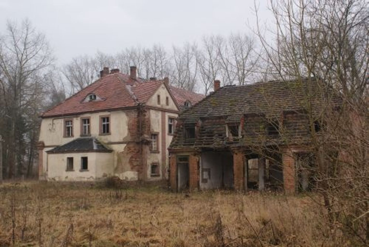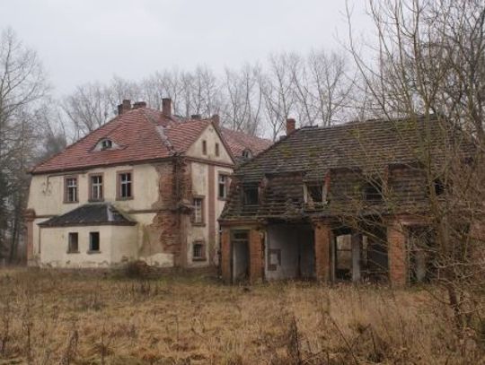 - A pałac, park, walące się ogrodzenie, budynki gospodarcze?