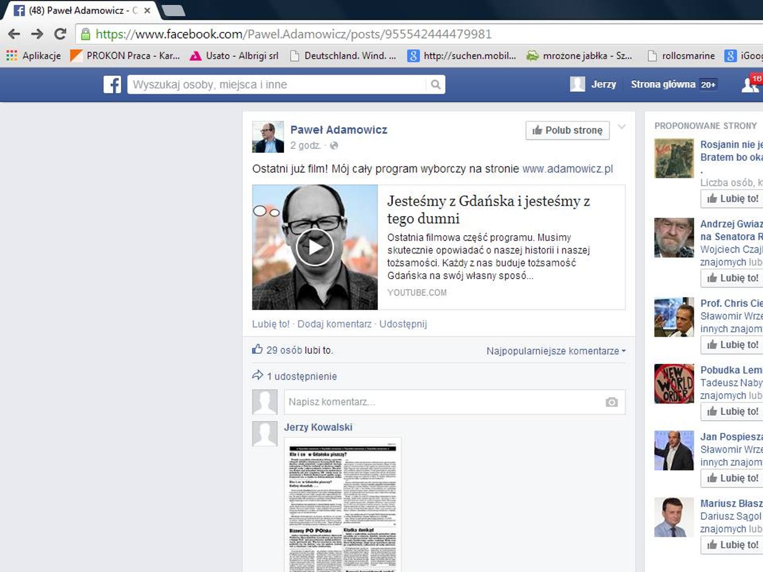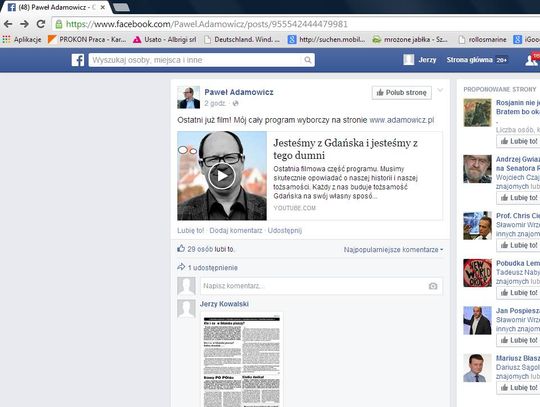 Na stronie facebooka Komitetu Pawła Adamowicza zamieszczono czasopismo "Kurier Samorządu Gospodarczego", który opisuje niegospodarność władz Gdańska i podejrzenie popełnienia przestępstw. Redakcja PortalPomorza.pl otrzymała zdjęcia zrzutów strony internetowej, na której został zamieszczony Kurier. Jak się okazuje po godzinie informacje te zostały zdjęte i nie są już dostępne.