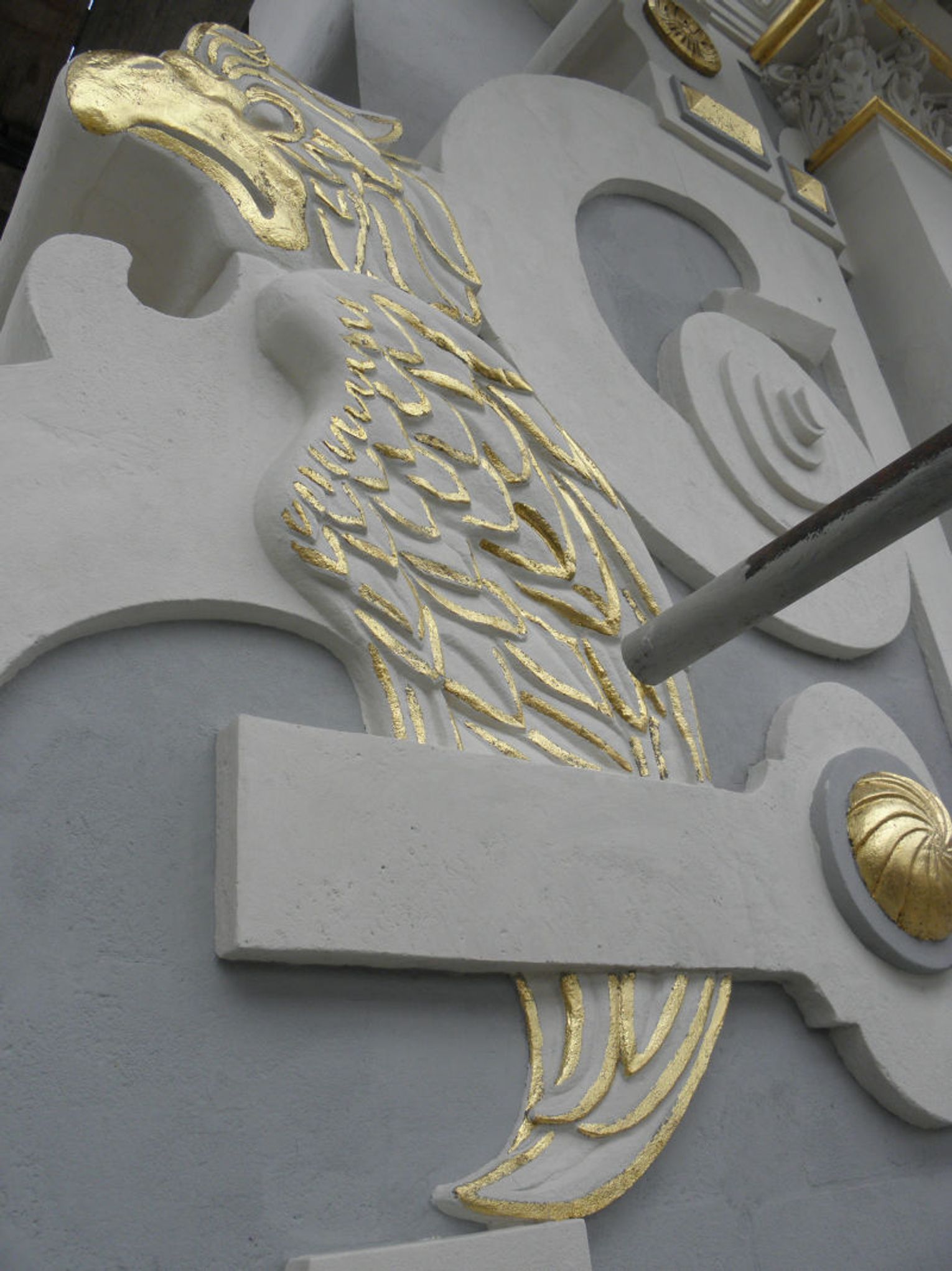 W okresie od 07.05.2014- 30.10.2014 przeprowadzono na fasadzie południowej Dworu Artusa kompleksowe prace konserwatorskie wraz z rekonstrukcją polichromii.